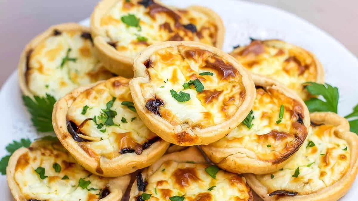 Sepiring quiches mini-coklat keemasan, makanan jari yang sempurna, dihiasi dengan peterseli cincang. Quiches menampilkan kerak bersisik, atasnya dengan keju dan rempah -rempah yang meleleh, diatur dalam tumpukan di atas piring putih. Ideal untuk pertemuan di mana Dips Dip didorong!.Sepiring quiches mini-coklat keemasan, makanan jari yang sempurna, dihiasi dengan peterseli cincang. Quiches menampilkan kerak bersisik, atasnya dengan keju dan rempah -rempah yang meleleh, diatur dalam tumpukan di atas piring putih. Ideal untuk pertemuan di mana Dips Dip didorong!.Kredit Gambar: Sewa Hart’s Kitchen