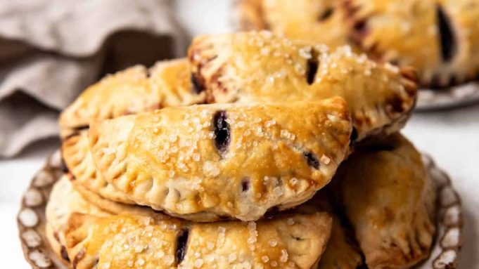 Blueberry tangan pai adalah suguhan terbaik yang dapat Anda pegang di tangan Anda! Dengan kerak emas dan mentega yang sangat bersisik dan isian blueberry yang berair dan manis, setiap gigitan rasanya seperti sepotong sinar matahari musim panas.