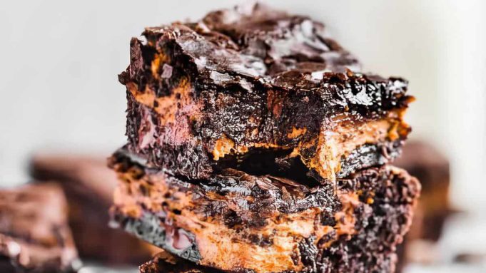 Peringatan: Brownies fudgy dengan adonan kue selai kacang ini sangat lezat! Panggang batch dan lihat sendiri – Anda tidak akan menyesalinya.