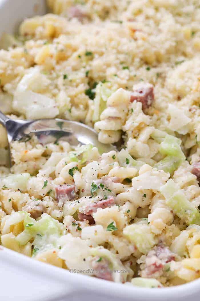 Tips Bahan untuk Daging Daging Daging Daging Daging Sapi Kornet – Jika Anda memiliki sisa daging kornet, itu sempurna untuk resep ini. Jika tidak, tanyakan pada konter deli untuk mengiris daging kornet lebih tebal. Saus Keju – Saus keju menyerupai mac dan keju dengan rasa reuben. Saus keju swiss, sedikit mustard Dijon, dan saus Worcestershire menambah rasa. Pasta & Kubis – Pangkal casserole ini adalah pasta dan kubis. Jika Anda memiliki kubis yang tersisa dari daging kornet, gunakan itu sebagai pengganti kubis segar. Variasi