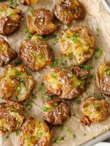 Kentang Tumbuk Renyah Sangat mudah! Resep satu wajan ini menawarkan cara cepat dan mudah untuk membuat lauk kentang yang beraroma. Tidak perlu mengupas atau mencambuk; smashing hanya membutuhkan waktu satu menit. Kentang tumbuk yang renyah adalah resep yang dapat disesuaikan dan dipadukan dengan hidangan daging apa pun, tetapi juga dapat diisi dengan topping dan disajikan sebagai hidangan utama. Cobalah metode memasak alternatif! Untuk resep kentang tumbuk yang lebih mudah, cobalah versi goreng udara yang disebutkan di bawah. Pembersihan akan sangat mudah!