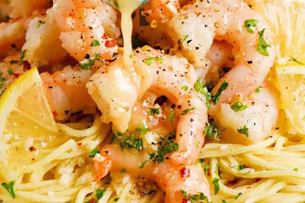 - Rasa: mentega, berbau bawang putin, dan cerah dengan udang lembut dalam saus anggur putih yang kaya.